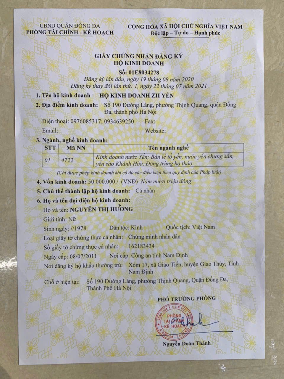 CHỨNG NHẬN ĐĂNG KÝ KINH DOANH: